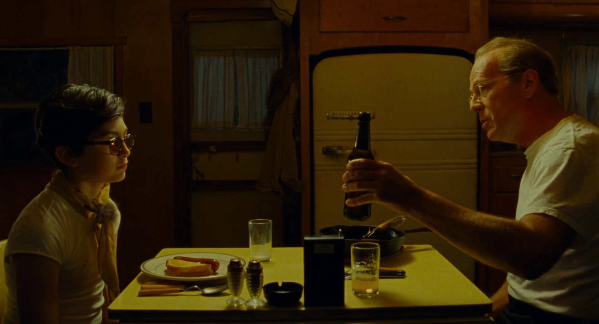 A large part of that is the casting. Jared Gilman and Kara Hayward were both twelve at the time of filming, with Anderson casting age-appropriate rather than older-aged-down. It’s common for shows or films about teens/high schoolers to cast actors in their early 20s, feeling that homogeneity and emotional realism can bridge the verisimilitude gap. While that might help with filming and allowing productions to avoid labor safeguards placed around minors, there really is no replacement for seeing youth represented by real performer. Just watch Claire Danes in My So Called Life to witness an incredible example of that.