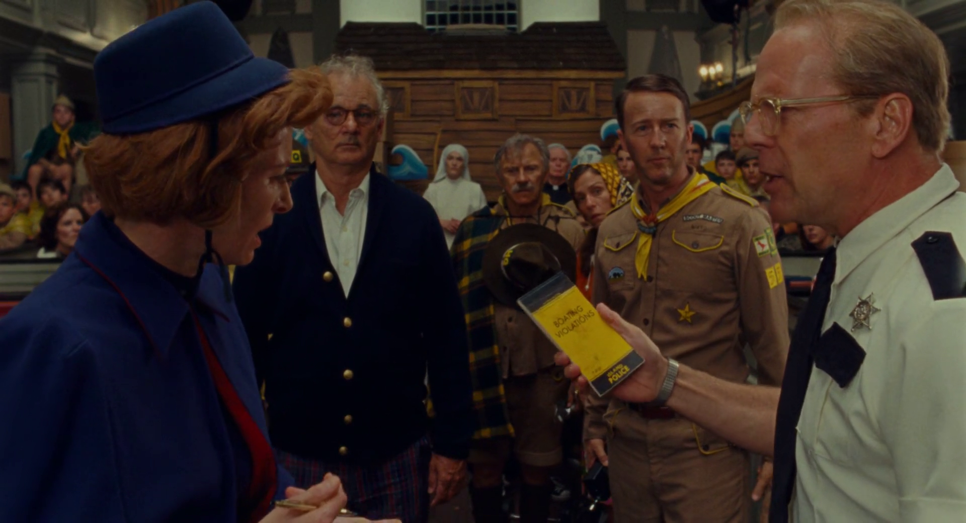 Sam first clocks Suzy in a production of Noye’s Fludde. Itself a one-act play designed for amateur performers, Anderson himself had performed in that same play as a child1. The first meeting between them reveals a lot about Sam, the way he fixates on specific ideas and how his inquisitive mind leads him to learn about the world around him. He has some interest in the performance, but it’s Suzy who captures his interest and finding her what leads him through the backstage area until he does.
