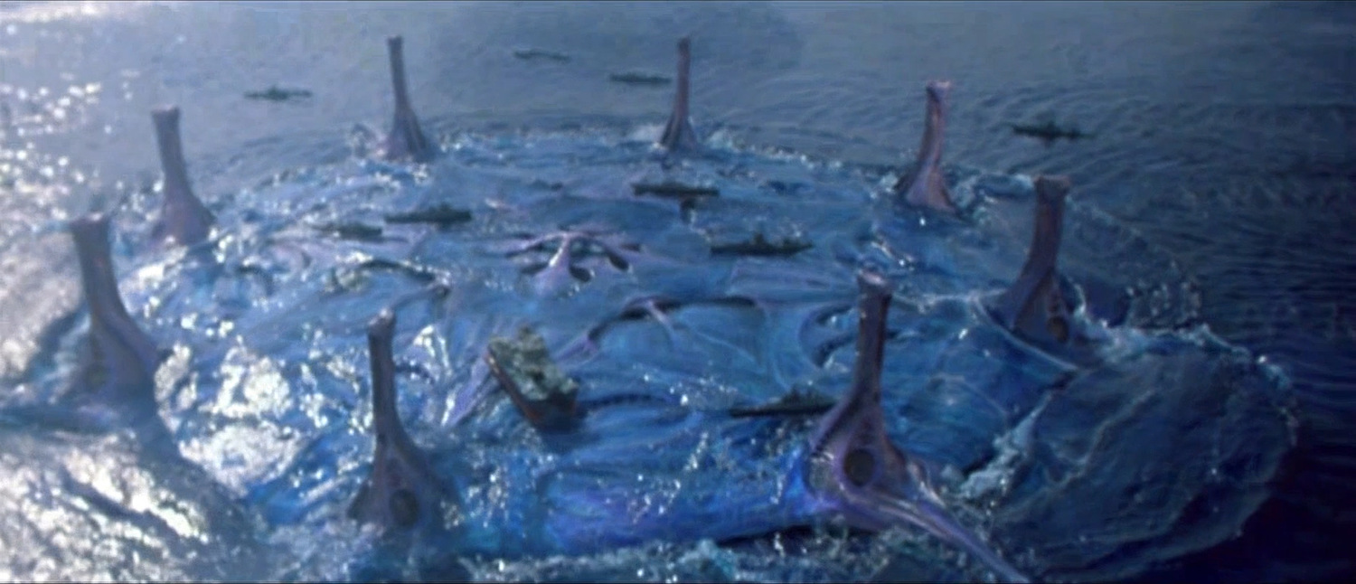 For The Abyss, Cameron fixes this particular problem. Like Roy, Bud (Ed Harris) makes it onto the alien spacecraft, but when he gets there the aliens look at him quizzically. They showcase the thousand-foot waves they’ve created, threatening to destroy all of human civilization. Their reason? They show footage of humans trying to kill other humans, escalating tensions between the U.S. and the Soviet Union. The mayhem and destruction disturbs them.