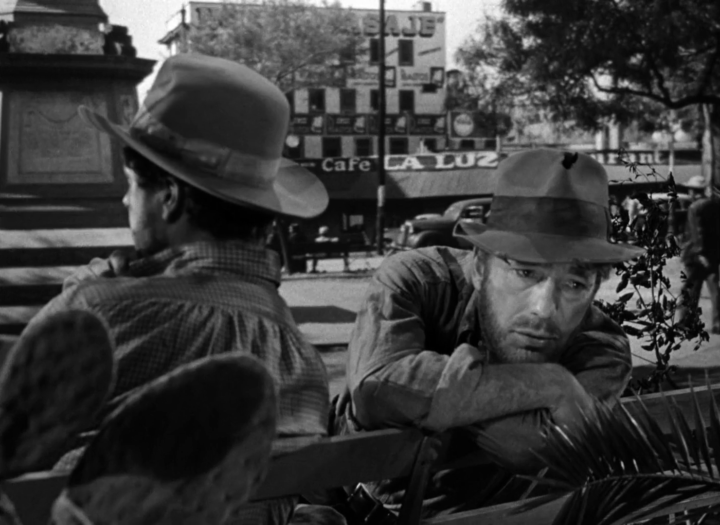 Without knowing what The Treasure of the Sierra Madre is about, the beginning is… quite strange. Perhaps strangest of all is seeing Dobbs as drifter in a Mexican town. Because the cultural memory of Humphrey Bogart is as smooth talking, tux wearing, romantic Rick Blaine in Casablanca, it’s easy to look at the man as some dashing, almost Cary Grant-esque vision of handsomeness. And if it’s not Casablanca it’s probably The Big Sleep or The Maltese Falcon, where he’s some movie star private investigator. Or maybe it’s his Oscar winning turn in The African Queen, where he’s got a perpetual beard as he plays a skipper, taking Katherine Hepburn down an African river by boat.