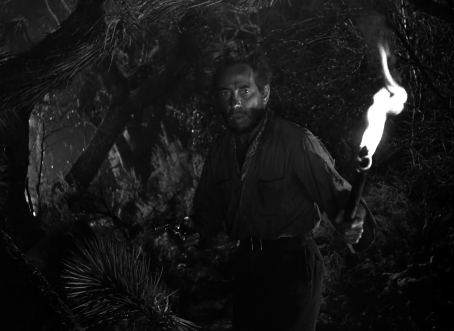 With McCormick waylaid, Dobbs and Curtin begin their return to the civilization so they can trade in the gold for a clean profit. By now, though, Dobbs has completely lost it. Untethered from reality he challenges Curtin and eventually guns him down in cold blood. His avarice has so fully addled his brain that when Curtin’s body disappears (because the wound was not fatal) he assumes some tiger took it away. Whatever he needs to tell himself to keep moving and satiate his greed.