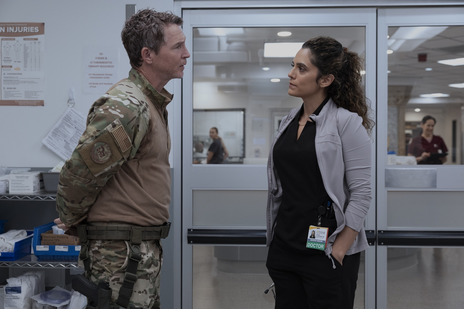 - Linking this idea of Santos and Javadi having good bedside manner is the moment where the two briefly cross paths in the bathroom. I love that the show takes the time to show that the relentless nature of the job means basic needs fall by the wayside. But the big reveal here of Santos's cutting scars is so devastating. Sure, this feels like it could be the sort of bullshit "does this count?" character work that CSI would do, leaving empty cyphers into which the viewer can pour their reads on the characters. But that's not how The Pitt operates. I hope that Santos is okay and whatever haunted her before isn't still doing it now.