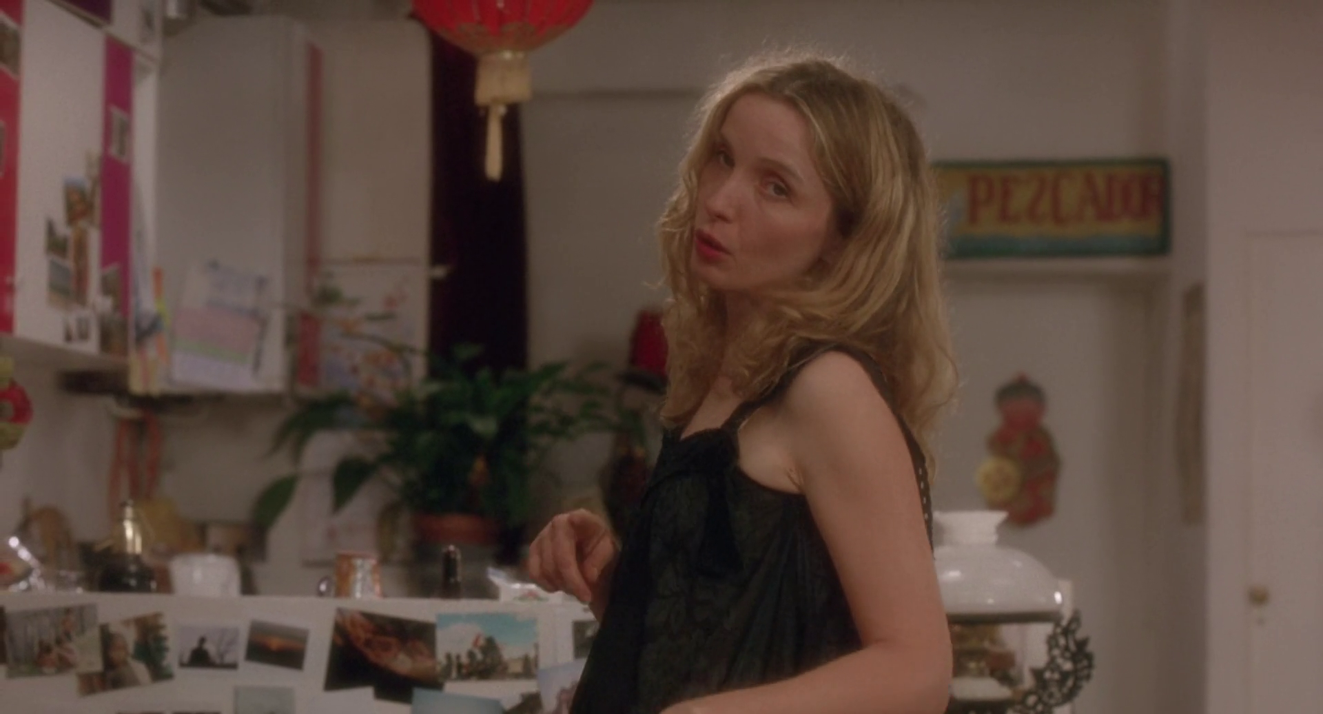 As they arrive at Celine’s apartment, things get muddy. The car ride was intense and dramatic, the road they finally take together tearing down all pretense and defense in the name of honesty and pain at the one they didn’t. Jesse doesn’t have to get out of the car when she does, but he does and they hug. He offers to walk her to her door, then he demands to go inside to hear that one song of hers. They climb the stairs. It’s agonizing. This film has been nothing but walking and talking to this point. Yet the ascent is silent, eternal. They keep glancing at each other and Jesse gazes around in wonder, taking in every inch of this space where Celine exists.