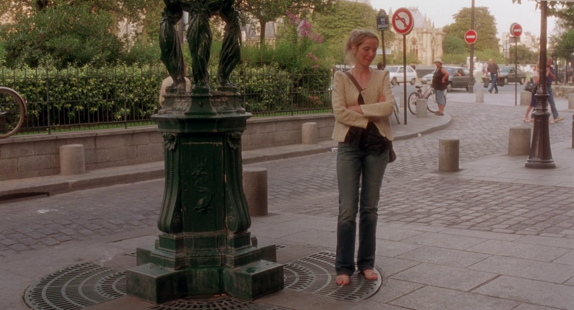 Before Sunset is a delicate dance between Jesse and Celine. Nine years ago, they were carefree with nothing to lose. Now, each with nine years of life built up, the scar tissue of what that night might or might not have meant makes the two keep their cards close. The dance slowly breaks down each other’s defenses until they reveal their raw, wounded centers. There are glimpses at first. Celine nervously fidgets outside of the bookstore and immediately asks if Jesse ended up returning to Vienna six months later. Jesse lies to Celine about it, but also when she asks him what his problems are, he proudly claims he currently has no problems in the world because he’s so happy to be there.